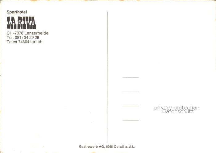 32511095 Lenzerheide GR Sporthotel La Riva postalisch nicht gelaufen Erhaltung siehe scans KatCode: 11470360610438