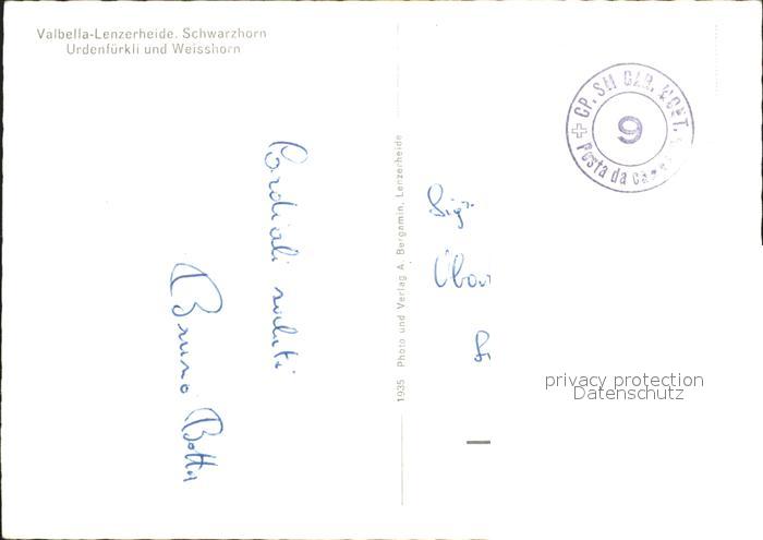 11637690 alte Postkarte Lenzerheide Valbella Schwarzhorn Urdentuerkli und Weisshorn postalisch gelaufen Erhaltung siehe scans KatCode: 11470100305984