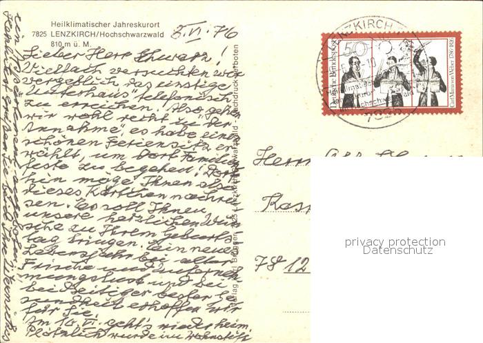 71830893 alte Postkarte Lenzkirch Hochschwarzwald BW postalisch gelaufen Erhaltung siehe scans KatCode: 11110008315068