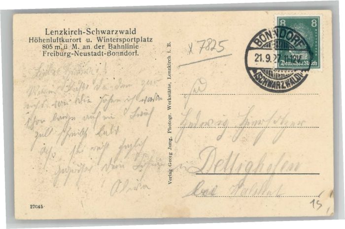 40729243 Lenzkirch Hochschwarzwald BW postalisch gelaufen Alte Ansichtskarte Postkarte alte Postkarte Katcode 11110008315068