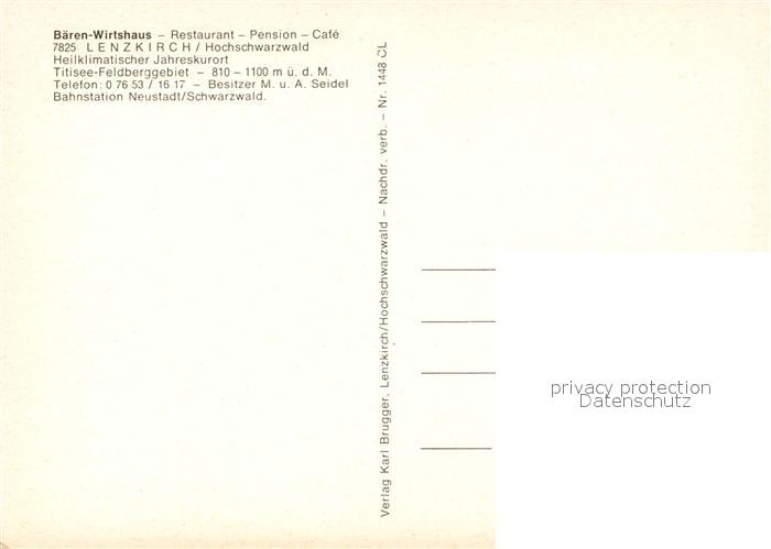73039456 Lenzkirch Hochschwarzwald BW Baeren Wirtshaus postalisch nicht gelaufen Erhaltung siehe scans [KathaD81] KatCode: 11110008315068