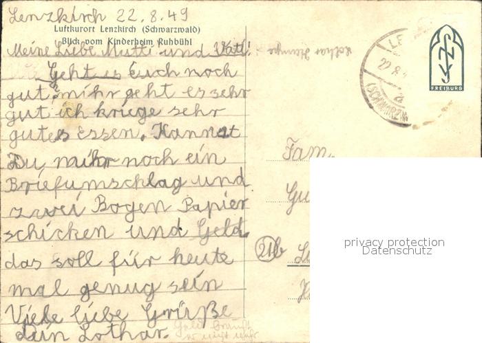 72227809 alte Postkarte Lenzkirch Hochschwarzwald BW Blick vom Kinderheim Ruhbuehl postalisch gelaufen Erhaltung siehe scans KatCode: 11110008315068