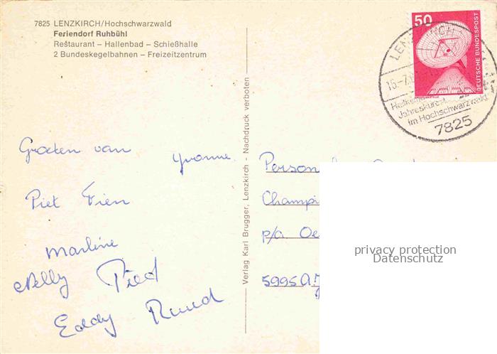 74043592 Lenzkirch Hochschwarzwald BW Feriendorf Ruhbuehl Restaurant Hallenbad Minigolf Freizeitzentrum Wegweiser postalisch gelaufen Erhaltung siehe scans [FriedD77] alte Postkarte Frie Katcode 11110008315068