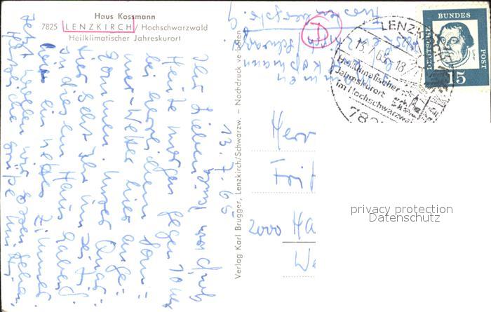 71900801 alte Postkarte Lenzkirch Hochschwarzwald BW Haus Kossmann Kurort Schwarzwald postalisch gelaufen Erhaltung siehe scans KatCode: 11110008315068