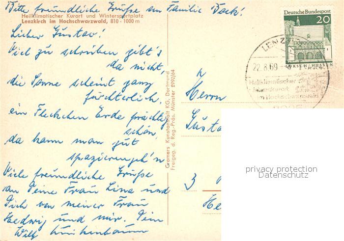 73667903 Lenzkirch Hochschwarzwald BW Heilklimatischer Kurort und Wintersportplatz im Schwarzwald Fliegeraufnahme postalisch gelaufen Erhaltung siehe scans [FriedD77] alte Postkarte Frie Katcode 11110008315068