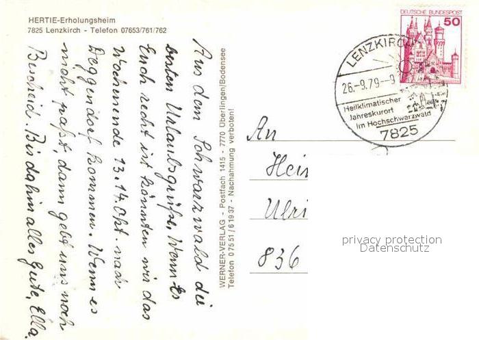 72667344 alte Postkarte Lenzkirch Hochschwarzwald BW Hertie Erholungsheim postalisch gelaufen Erhaltung siehe scans [AndreD76] KatCode: 11110008315068