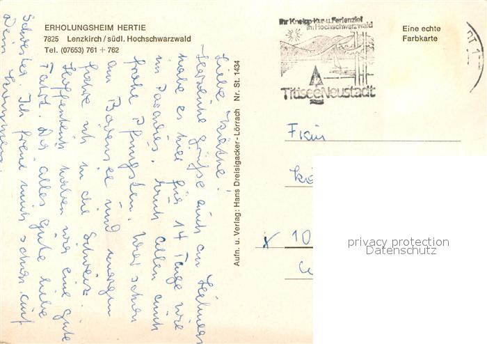 73660613 Lenzkirch Hochschwarzwald BW Hertie Erholungsheim im Schwarzwald postalisch gelaufen Erhaltung siehe scans [FriedD77] alte Postkarte Frie Katcode 11110008315068
