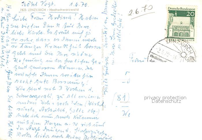 73073932 alte Postkarte Lenzkirch Hochschwarzwald BW Hochschwarzwald Panorama postalisch gelaufen Erhaltung siehe scans [WerneD78] KatCode: 11110008315068