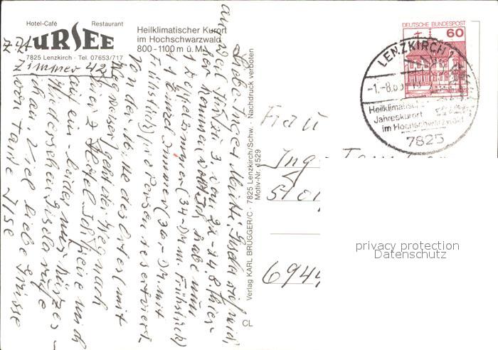 71905154 alte Postkarte Lenzkirch Hochschwarzwald BW Hotel Cafe Restaurant Ursee postalisch gelaufen Erhaltung siehe scans KatCode: 11110008315068