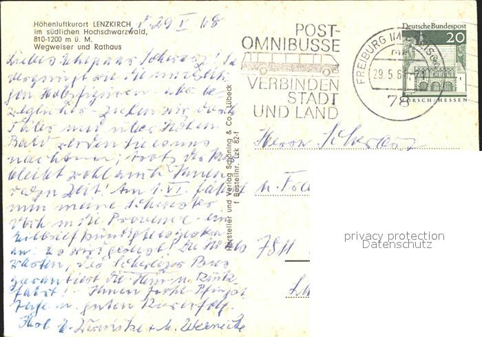71830892 alte Postkarte Lenzkirch Hochschwarzwald BW Wegweiser Rathaus postalisch gelaufen Erhaltung siehe scans KatCode: 11110008315068