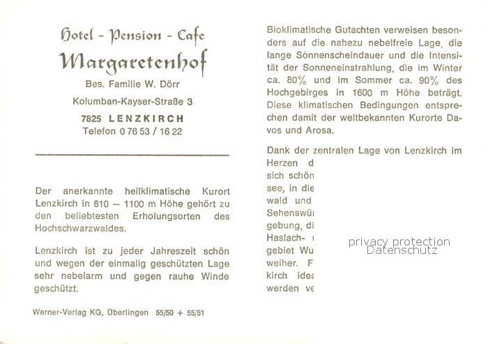 73615235 Lenzkirch Hotel Cafe Pension Margaretenhof postalisch nicht gelaufen Werbekarte (keine Postkarte) Erhaltung siehe scans [WerneD78] KatCode: 11110008315068