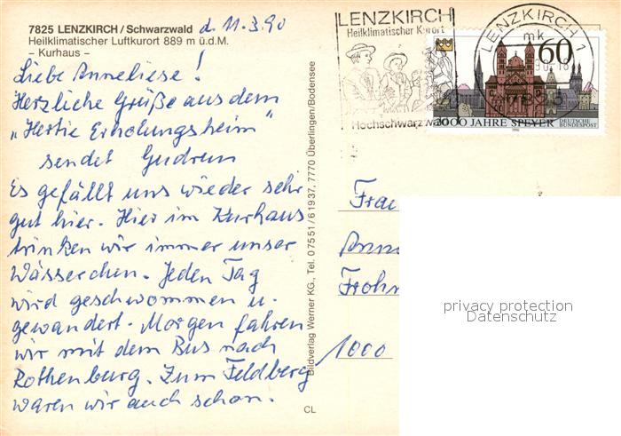 73293419 alte Postkarte Lenzkirch Kurhaus postalisch gelaufen Erhaltung siehe scans [KathaD81] KatCode: 11110008315068