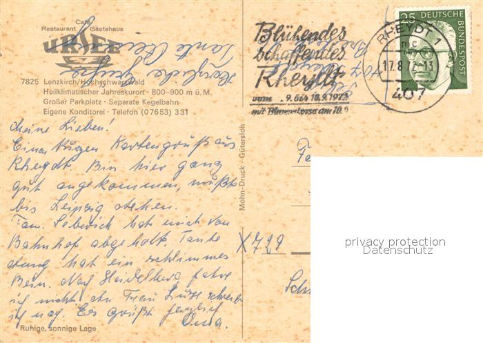 73634338 alte Postkarte Lenzkirch Restaurant Gaestehaus Ursel postalisch gelaufen Erhaltung siehe scans [FriedD77] KatCode: 11110008315068