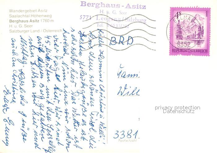 73174651 alte Postkarte Leogang Berghaus Asitz postalisch gelaufen Erhaltung siehe scans [PaolaD17] KatCode: 11390322050609