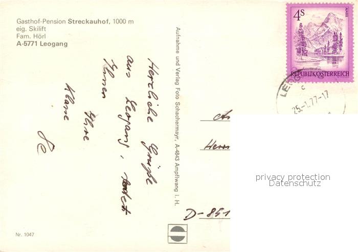 73042404 alte Postkarte Leogang Gasthof Pension Streckauhof Wintersportplatz Alpen postalisch gelaufen Erhaltung siehe scans [FriedD77] KatCode: 11390322050609