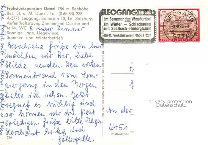 72768004 alte Postkarte Leogang Haus Danzl Ortsansicht postalisch gelaufen Erhaltung siehe scans [WerneD78] KatCode: 11390322050609