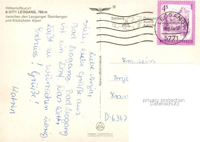 73592387 alte Postkarte Leogang Hoehenluftkurort Leonganger Steinberge Fliegeraufnahme postalisch gelaufen Erhaltung siehe scans [FriedD77] KatCode: 11390322050609