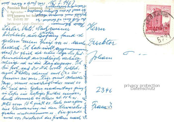 74138852 alte Postkarte Leogang im Tale Saalbach-Hinterglemm AT Pension Bad Leogang postalisch gelaufen Erhaltung siehe scans [WerneD78] KatCode: 11390322050618