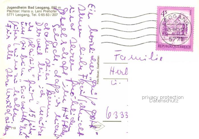 12880800 alte Postkarte Leogang Jugendheim postalisch gelaufen Erhaltung siehe scans [KathaD81] KatCode: 11390322050609