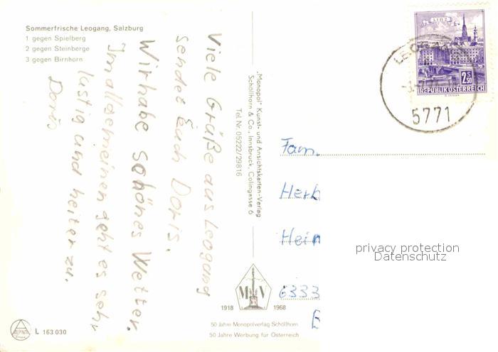 72897420 alte Postkarte Leogang mit Spielberg Steinberge und Birnhorn postalisch gelaufen Erhaltung siehe scans [WerneD78] KatCode: 11390322050609