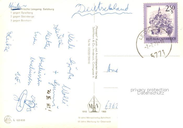 73591911 alte Postkarte Leogang Panorama Blick gegen Spielberg Steinberge Birnhorn Alpen postalisch gelaufen Erhaltung siehe scans [FriedD77] KatCode: 11390322050609