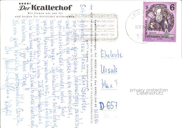 72488609 alte Postkarte Leogang Restaurant Hotel Der Krallerhof postalisch gelaufen Erhaltung siehe scans KatCode: 11390322050609