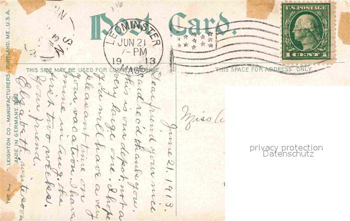 12623827 old postcard Leominster United States Bahnhof postalisch gelaufen Erhaltung siehe scans [AndreD76] KatCode: 14140230000000