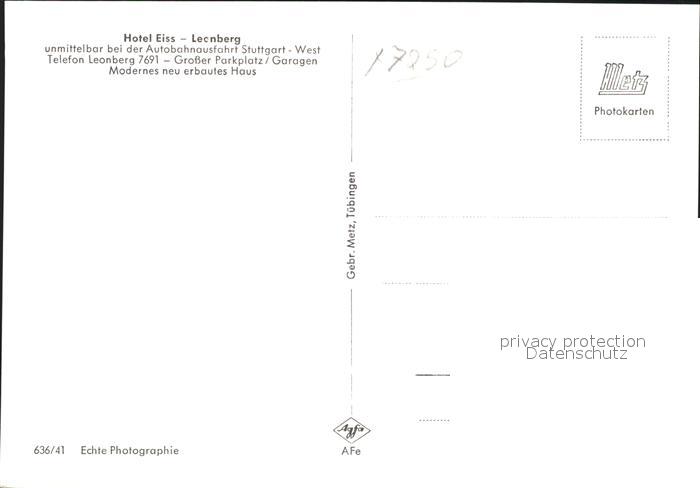 41786534 Leonberg Wuerttemberg Hotel Eiss postalisch nicht gelaufen Erhaltung siehe scans Alte Ansichtskarte Postkarte hz_F Katcode 11110008115028