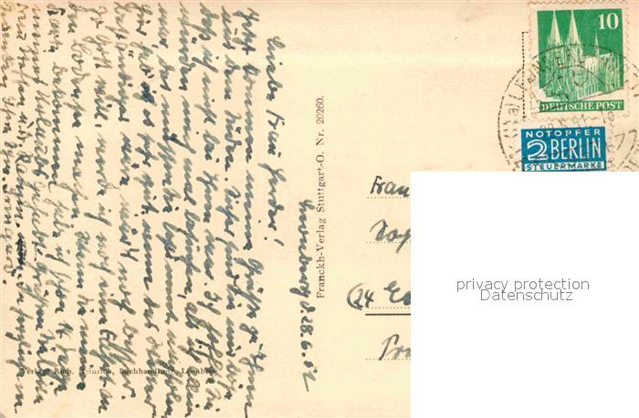 72893553 alte Postkarte Leonberg Wuerttemberg Ortsansicht mit Kirche Geschichte postalisch gelaufen Erhaltung siehe scans [FriedD77] KatCode: 11110008115028