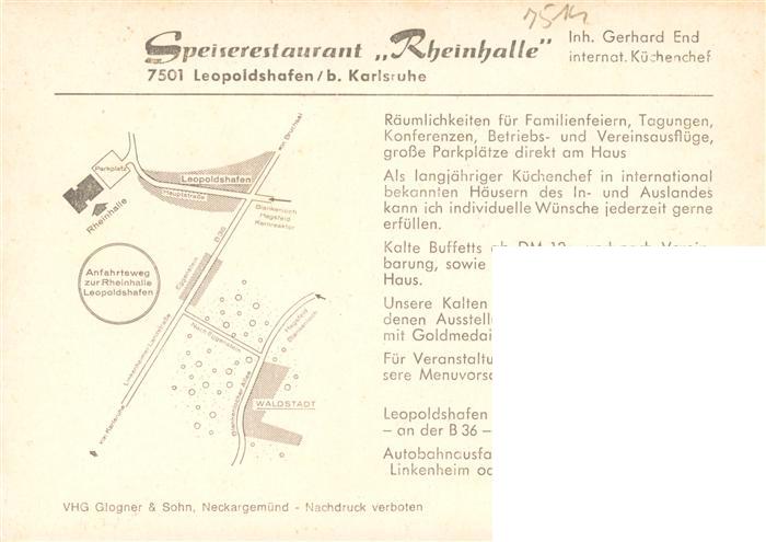 73938299 Leopoldshafen Eggenstein-Leopoldshafen Restaurant Rheinhalle Gastraeume postalisch nicht gelaufen Werbekarte (keine Postkarte) Erhaltung siehe scans [WerneD78] KatCode: 11110008215102