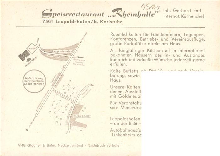 73938300 Leopoldshafen Eggenstein-Leopoldshafen Restaurant Rheinhalle Gastraeume postalisch nicht gelaufen Werbekarte (keine Postkarte) Erhaltung siehe scans [WerneD78] KatCode: 11110008215102