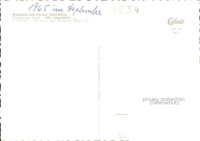 72032062 Leopoldstal Lippe Waldhotel-Pension Silbermuehle postalisch nicht gelaufen Erhaltung siehe scans KatCode: 11110005766032