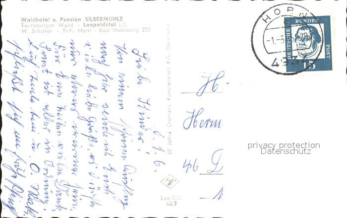 72466573 alte Postkarte Leopoldstal Lippe Waldhotel Pension Silbermuehle postalisch gelaufen Erhaltung siehe scans KatCode: 11110005766032