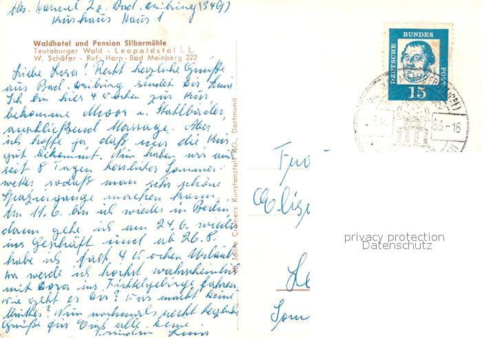 73042341 alte Postkarte Leopoldstal Lippe Waldhotel Pension Silbermuehle Teutoburger Wald postalisch gelaufen Erhaltung siehe scans [FriedD77] KatCode: 11110005766032