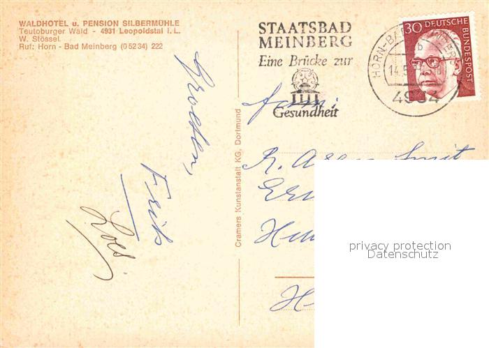 72903601 alte Postkarte Leopoldstal Lippe Waldhotel und Pension Silbermuehle postalisch gelaufen Erhaltung siehe scans [FriedD77] KatCode: 11110005766032