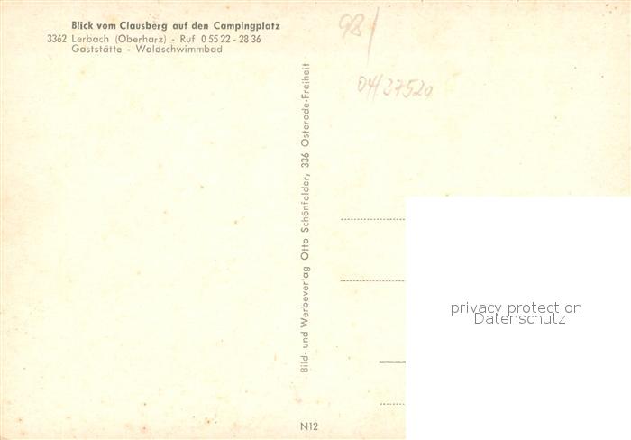 73171322 Lerbach Harz Blick vom Clausberg auf den Campingplatz postalisch nicht gelaufen Erhaltung siehe scans [FriedD77] KatCode: 11110003156011