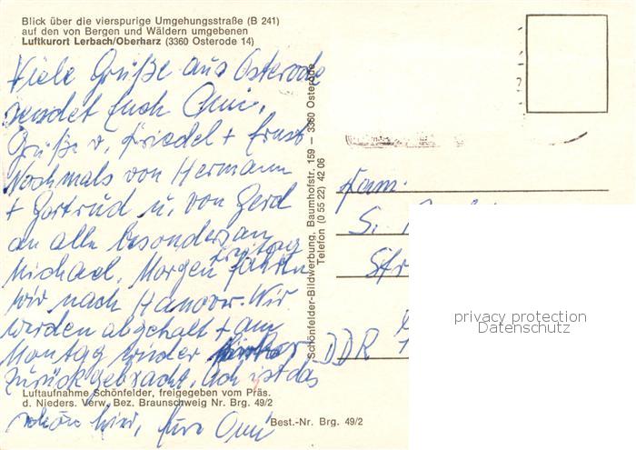 73761117 alte Postkarte Lerbach Harz Fliegeraufnahme postalisch gelaufen Erhaltung siehe scans [WerneD78] KatCode: 11110003156011