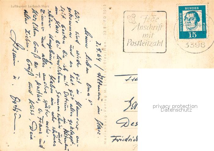 73673495 alte Postkarte Lerbach Harz Panorama Gaststaette Terrasse Freibad postalisch gelaufen Erhaltung siehe scans [FriedD77] KatCode: 11110003156011