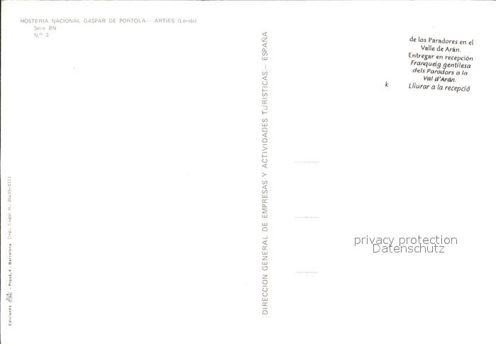 Lerida Hosteria Nacional Gaspar de Portola Arties postalisch nicht gelaufen Erhaltung siehe scans
