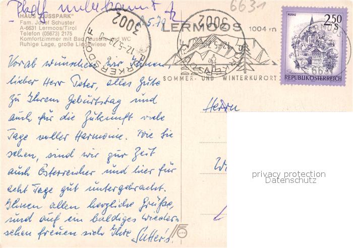 73531543 alte Postkarte Lermoos Tirol Gaestehaus Pension Haus Lusspark Alpen postalisch gelaufen Erhaltung siehe scans [FriedD77] KatCode: 11390331070821
