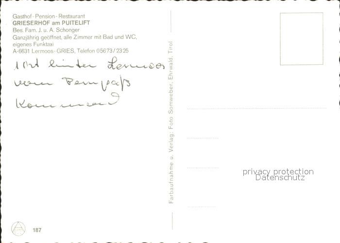 71986298 Lermoos Tirol Gasthof Grieserhof postalisch nicht gelaufen Erhaltung siehe scans KatCode: 11390331070821