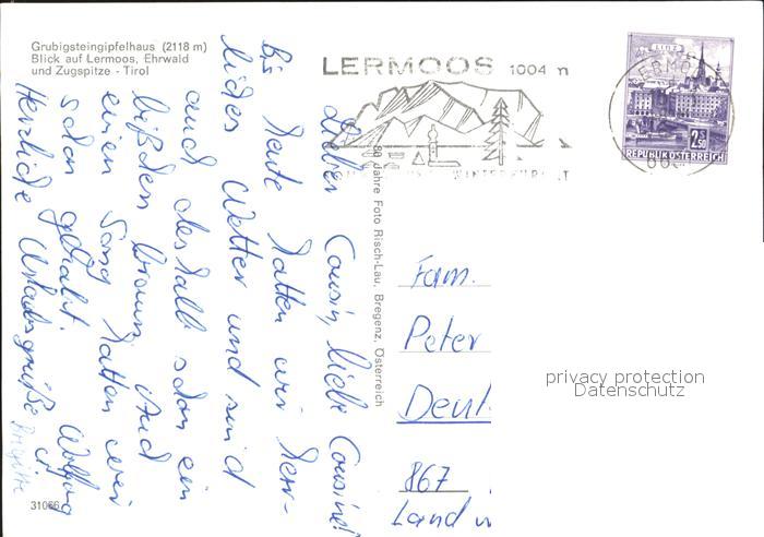 72079934 alte Postkarte Lermoos Tirol Grubigsteingipfelhaus Zugspitze postalisch gelaufen KatCode: 11390331070821