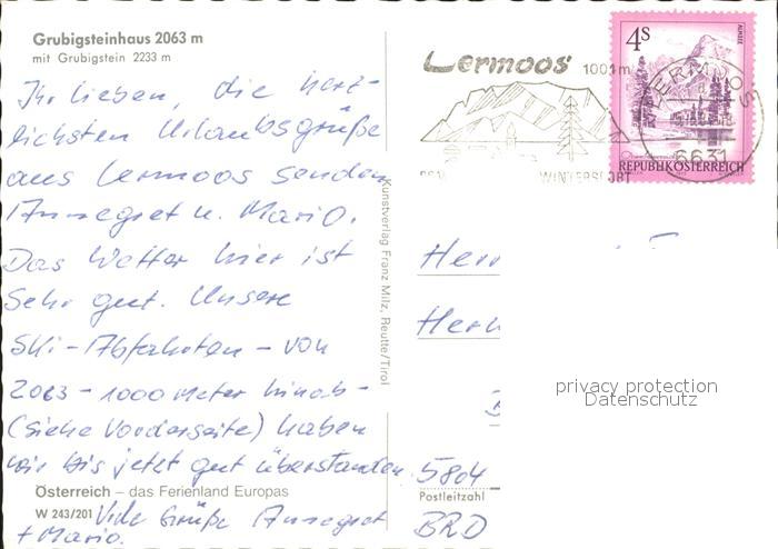 72007584 alte Postkarte Lermoos Tirol Grubigsteinhaus mit Grubigstein postalisch gelaufen KatCode: 11390331070821