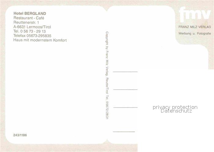 72641353 Lermoos Tirol Hotel Bergland Terrasse Wettersteingebirge postalisch nicht gelaufen Erhaltung siehe scans [FriedD77] KatCode: 11390331070821