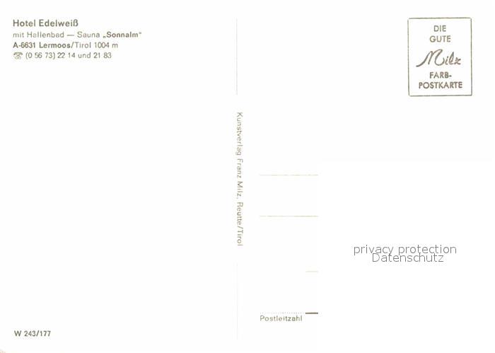 72900852 Lermoos Tirol Hotel Edelweiss postalisch nicht gelaufen Erhaltung siehe scans [WerneD78] KatCode: 11390331070821