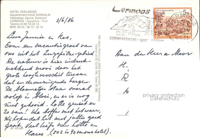 72235602 alte Postkarte Lermoos Tirol Hotel Edelweiss postalisch gelaufen Erhaltung siehe scans KatCode: 11390331070821