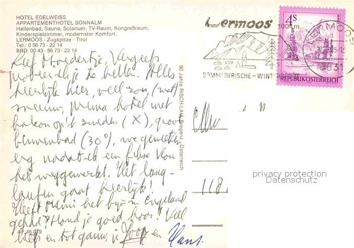 12870033 alte Postkarte Lermoos Tirol Hotel Edelweiss Appartamenthotel Sonnalm postalisch gelaufen Erhaltung siehe scans [PaolaD17] KatCode: 11390331070821