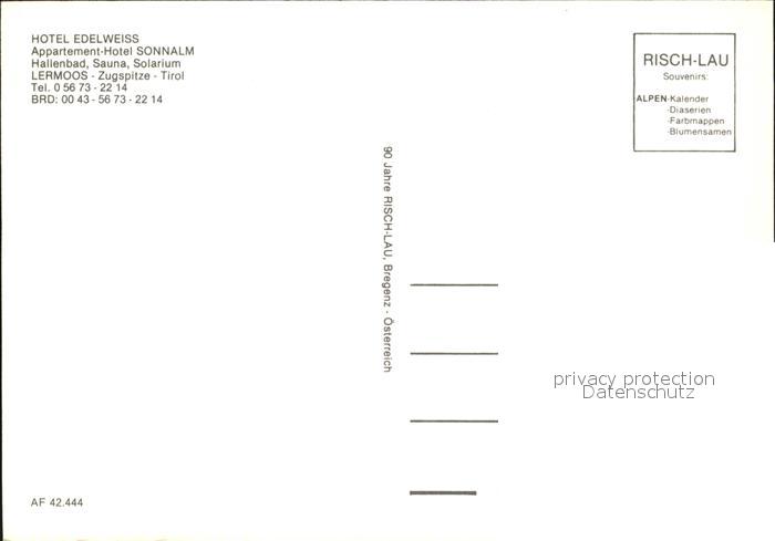 72413430 Lermoos Tirol Hotel Edelweiss Appartment Hotel Sonnalm postalisch nicht gelaufen Erhaltung siehe scans KatCode: 11390331070821