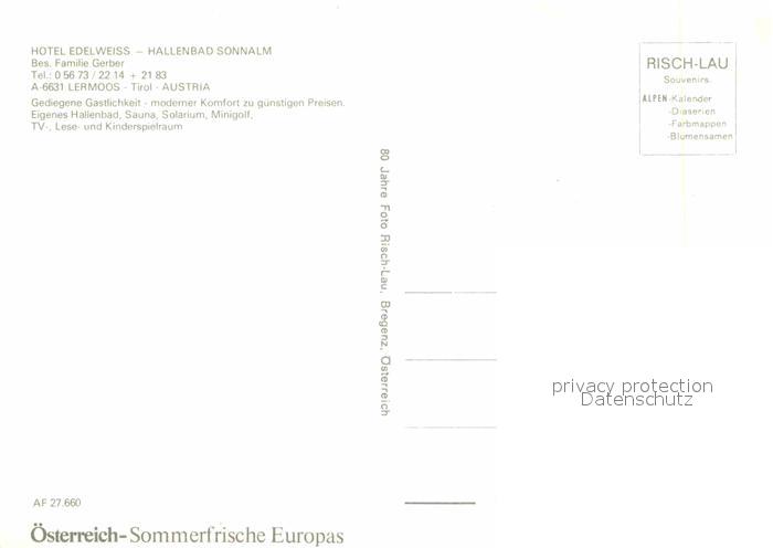 72896765 Lermoos Tirol Hotel Edelweiss Hallenbad Sonnalm postalisch nicht gelaufen Erhaltung siehe scans [KathaD81] KatCode: 11390331070821