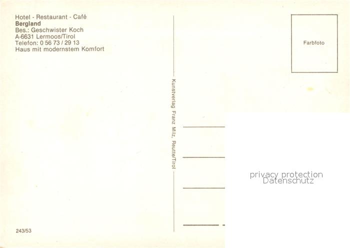 13315248 Lermoos Tirol Hotel Restaurant Bergland postalisch nicht gelaufen Erhaltung siehe scans [WerneD78] KatCode: 11390331070821